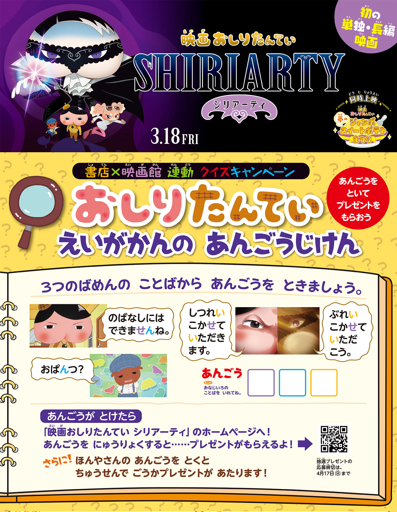 「映画おしりたんて シリアーティ」公開記念 書店×映画館 連動クイズキャンペーン おしりたんてい ププッとあんごうじけん